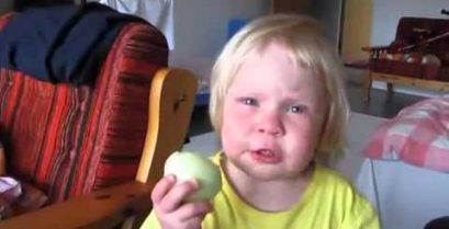 Tämä pieni tyttö Ukrainan nauttii sipuli huolimatta siitä, että saa kyyneleet silmissä