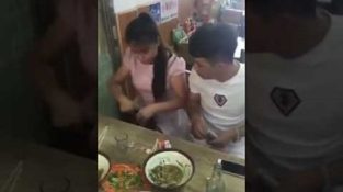 Tyttö kohteliaasti kieltäytyy herkku poika ja vaati hän ostaa hänelle. Nuori mies vaikuttaa hämmentyneeltä tästä liikkeestä…