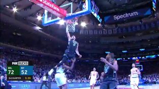Giannis Antetokounmpo tekee kauhea hypätä yllätys, hyppää yli Tim Hardaway saavuttaa hämmästyttävä dunk vastaan New York Knicks.