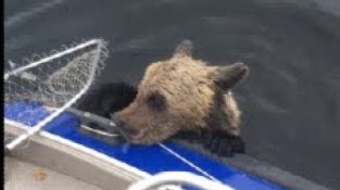 Venäjällä, Kaksi nuorta karhut että pyyhkäisi pois vesi tuli veneeseen kaksi kalastajaa yrittää säästää. Kalastajat ottivat heidät heidän veneensä ja kuljetetaan rantaan.