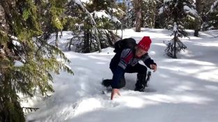 Vaellukselle metsässä Norjan, Molemmat miehet totesi reikä lumessa, missä suuri metso oli piilossa.