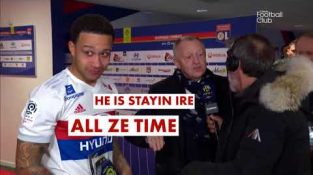 Canal +:n toimittaja haastattelee Memphis Depayta hänen parhaalla englannillaan. Ja presidentti Lyonin tekee myös mukava panoksen.