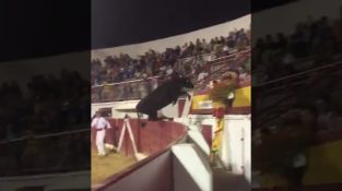 Viime yönä aikana härkätaistelu areenalla Vieux-Boucau, Uusi Aquitaine, Ranska, härkä kiipesi alustojen kulkemalla katsojat, ja aiheuttaa vähäisiä vammoja 4. Paniikki [...]