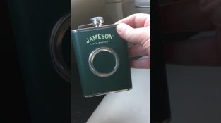 Pullo, viski Jameson, jolla on oma sisäänrakennettu lasi.