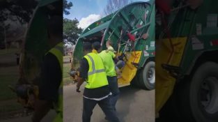 Rakennustyömaalla, työntekijä tekee pienen tanssin aikana tauko.