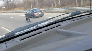 10. tammikuuta kaupungissa Harrison, Michigan, rengas ajoneuvon ja on revitty asemansa ajoneuvo liikkuu nopeudella.