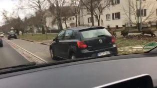 Kaupungissa Kleinmachnow Saksa, kuljettaja rekisteröi surrealistinen kohtaus autonsa. Suuri lauma villisikojen vapaana kaduilla.