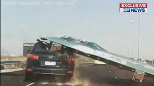Melbournessa, Australiassa, valtatie mainostaulu irrottaa pohjan putoavan ohi ajavan auton ajaa nainen. Kuljettaja loukkaantui, mutta ei vaarantanut henkensä.