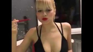 Tyttö yrittää syödä menettämättä häntä huulipunaa