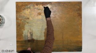 Alalla konservaattori Julian Baumgartner palauttaa maalaus Henry Ward Ranger (1858-1916) moderneilla tekniikoilla.
