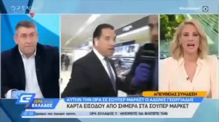 Asiakas supermarketit jaossa kymmeniä kontteja desinfiointiaine elää verkossa.