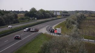 Unkarin moottoritiellä, perävaunun kuljettaja, jolla on perävaunu, kääntyy vastakkaiseen suuntaan, aiheuttaen onnettomuuden.