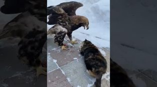 Kissa luuli voivansa varastaa kotkan lihan. Mutta hän oli väärässä…