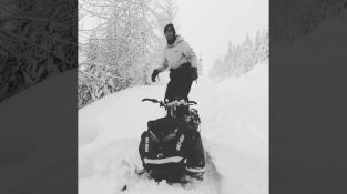 Yksi mies halusi näyttää kameralle kuinka paksua lunta Kanadassa on. Niin, teki sukelluksen moottorikelkalta lumelle rinteessä.