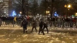 Venäläiset mielenosoittajat hyökkäävät poliisiin lumipalloilla