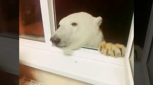 Jääkarhun ruokinta ikkunasta