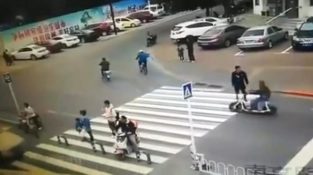 Skootterin mies haluaa ylittää tien risteykseltä ja odottaa kahden kaistan välillä. Kohde ei tunnu sopivan hänen läsnäolostaan, ja ilmaisee tyytymättömyyden [...]