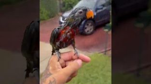 Mies poimii papukaijansa sateesta
