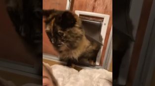 Nainen yrittää videoida kissansa saapuvan taloon, mutta kissa tuo mukanaan myös vieraan.