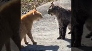 Kaksi raivoissaan kissaa tappelevat ja päätyvät yhdessä veteen. Tämä virkistävä dippi rauhoittaa mieltä.