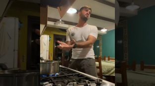 Sarah Yhdysvalloista, rikkoo tarkoituksella spagettit Carlo-italialaisen ystävän edessä, tallentaa reaktionsa.
