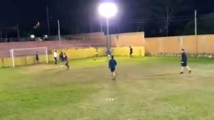 Ystävien välisen 5×5 ottelun aikana, erittäin ohitettu laukaus lähettää pallon sähköjohtoihin.
