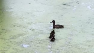 Kun hän yrittää saada kalaa, ankka näyttää siltä, että se pelaa piilopaikkaa seitsemällä ankanpoikallaan, kadonnut veden alla ilmestyä hieman kauemmas järven pinnalla luonnossa [...]