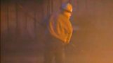 Avec le bâtiment fermé la porte principale, le voleur sera forcé de se rendre. Le greffier punit alors, le forçant à laver certaines voitures…