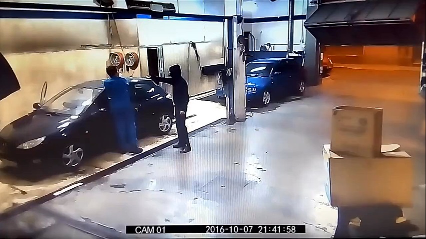 Un employé du lavage de voiture a été menacé par un voleur à capuchon avec un couteau. répondre initialement aux exigences de, Mais quand il va à la caisse pour lui donner des reçus obtient une arme à feu et le voleur fuit immédiatement.