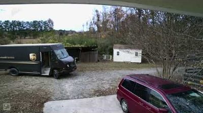 A tours de poulet dans la camionnette d'un livreur de UPS. Sur la route une fois de plus!