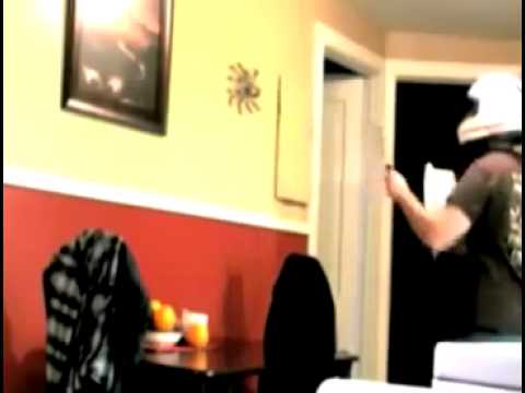 Une tentative d'extermination araignée énorme à l'aide d'un casque et un couteau. En cas d'échec