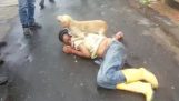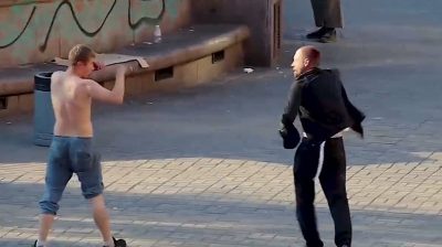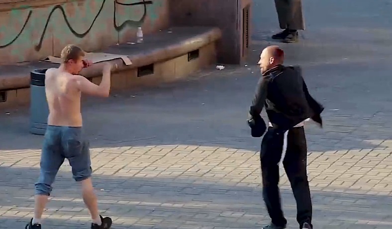 Les deux hommes ivres se battent en Russie se traduira par un knock-out violent, après l'un d'eux les mettra aux passants qui demandent à arrêter.