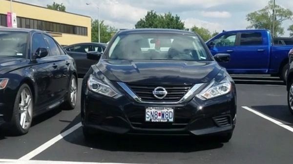Une dinde médiévale gardant une voiture garée dans un parking. La lance et le bouclier sont ajoutés numériquement, avec un montage par Jimmy quelque chose.