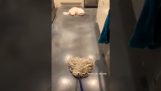 En Thaïlande, un barman est confronté à deux chiens. Le corbeau frappe l'un des chiens avec sa forte queue et lui fait peur.
