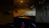 Un chihuahua tombe dans une piscine de la ville brésilienne de Jardinópolis et ne peut pas en sortir. Un pitbull qui a entendu ses cris, il saute dans la piscine pour attraper le petit chien avec sa bouche et le tirer hors de l'eau, le sauver de la noyade.