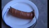 Le créateur de contenu de cuillère en colère mène une expérience en lançant quelques gouttes de café sur une cuillère chaude. La cuillère est placée sur la flamme d'un brûleur Bunsen.