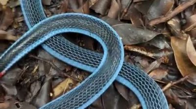Calliophis bivirgata est un serpent venimeux de couleur exceptionnelle originaire d'Asie du Sud-Est. Son corps est bleu foncé à noir avec des rayures latérales bleu vif et une tête et une queue rouges contrastées – cette coloration d'avertissement sert d'avertissement sur sa nature venimeuse..