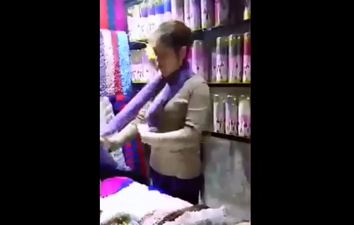 Ce tissu qui montre une vendeuse de magasin en Chine, peut se transformer en une forme quelconque de vêtements.