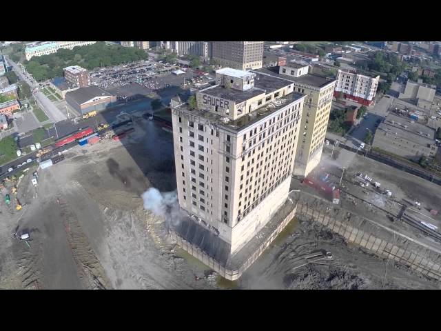 La démolition de l'hôtel Park Avenue Hôtel Construit en 1924 à Detroit, avec des images aériennes spectaculaires depuis un drone.
