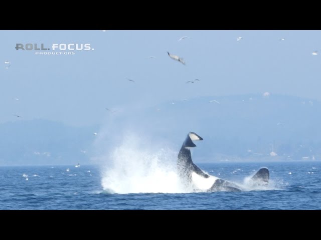 À Victoria, Canada, un âge orque de 20 ans sous la dénomination T69C lance violemment dans l'air par la queue d'un joint d'étanchéité, en envoyant à plus de vingt pieds.