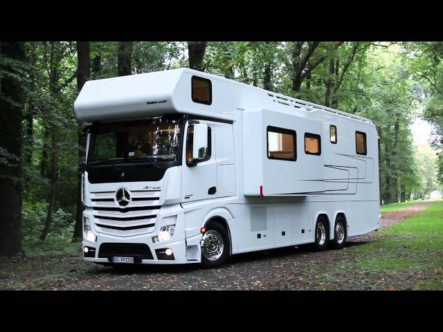 Le fabricant allemand de camping-cars de luxe Vario Mobil présente l'un des modèles plus luxueux de. Ceci est le Vario Alkoven 1200 Mercedes-Benz Actros. Ce joyau touristique est 10,5 mètres, largeur 2,30 mètres, et vous offre le confort d'un grand hôtel.