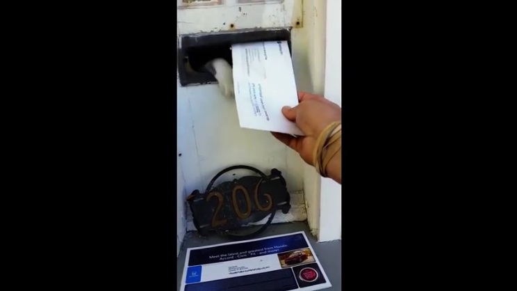 Un chat furieux, tentatives de collecter en forcer le courrier depuis le postier.