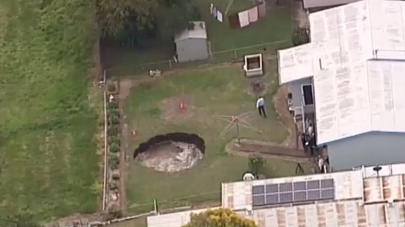 Le trou était seulement une mesure tôt le matin, mais rapidement atteint 8 mètres de diamètre par vagues violentes se brisent à l'intérieur. La création de pourrait être due à l’effondrement d’une vieille mine oubliée au titre de la propriété. Le couple déménagé temporairement, Alors que les ingénieurs attendent que le gouffre se stabilisera.