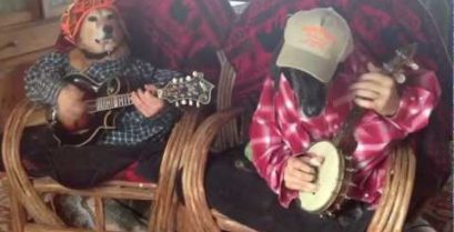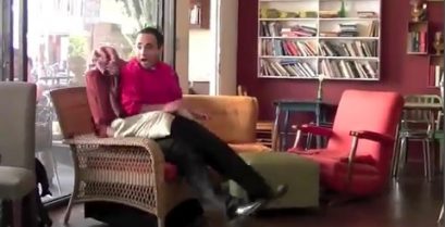 Le jongleur Rich Ferguson déguisé dans un fauteuil et effraie les clients dans un coffee shop en Californie.