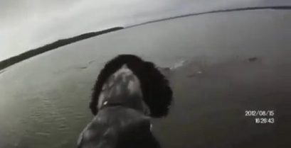 Un chien-pêcheur en Russie, plonger dans la mer et la capture d'un poisson sur son patron.