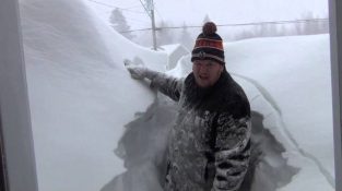 Dans la ville de Dieppe au Canada, un homme nous montre ce qui se passe à l'extérieur de son domicile après une tempête de neige. La neige est supérieure à 1,5 mètres et il est difficile d'en sortir [...]
