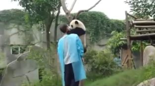 Un agriculteur de la province du Sichuan en Chine veut téléchargé un tout d'un arbre, mais le veut toujours une récompense. Donc demande un câlin avant de venir vers le bas.