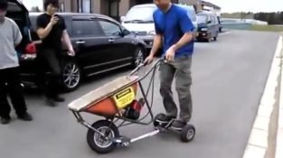 Un pousse-pousse à moteur qui facilite les travaux de construction. Cadeau et une paire de bouchons d'oreilles.