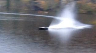 Vitesse impressionnante d'un petit bateau à moteur sans pilote artisanal TFL Ariane 2.