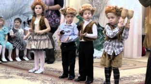 À une école maternelle en Russie, quatre jeunes enfants effectuent un quatuor musical pour la journée d'école. La pince avec maracas vole la vedette.